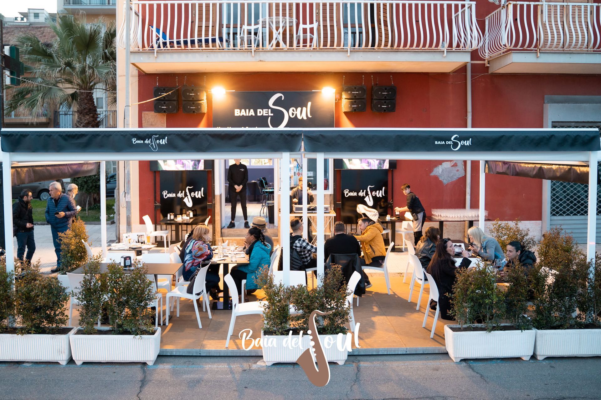 All'interno della Baia del Soul, gli ospiti possono godere di un'atmosfera accogliente e rilassante. Il locale è dotato di un sistema audio video che diffonde musica di tutti i generi e trasmette eventi sportivi durante l'intera giornata. Durante la stagione estiva o in occasioni speciali, vengono organizzati eventi musicali e culturali per intrattenere gli ospiti. Inoltre, il locale ospita l'esposizione di collezioni fotografiche private e quadri di giovani artisti, offrendo un'esperienza che unisce la gastronomia alla cultura.